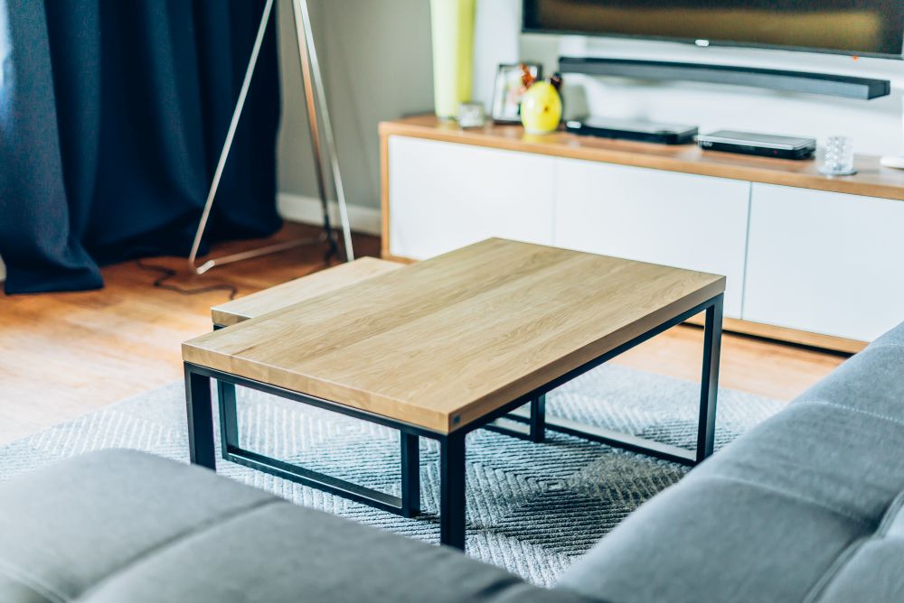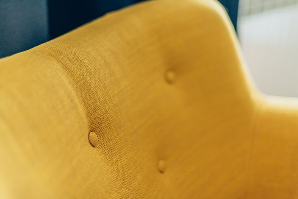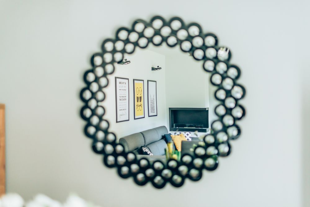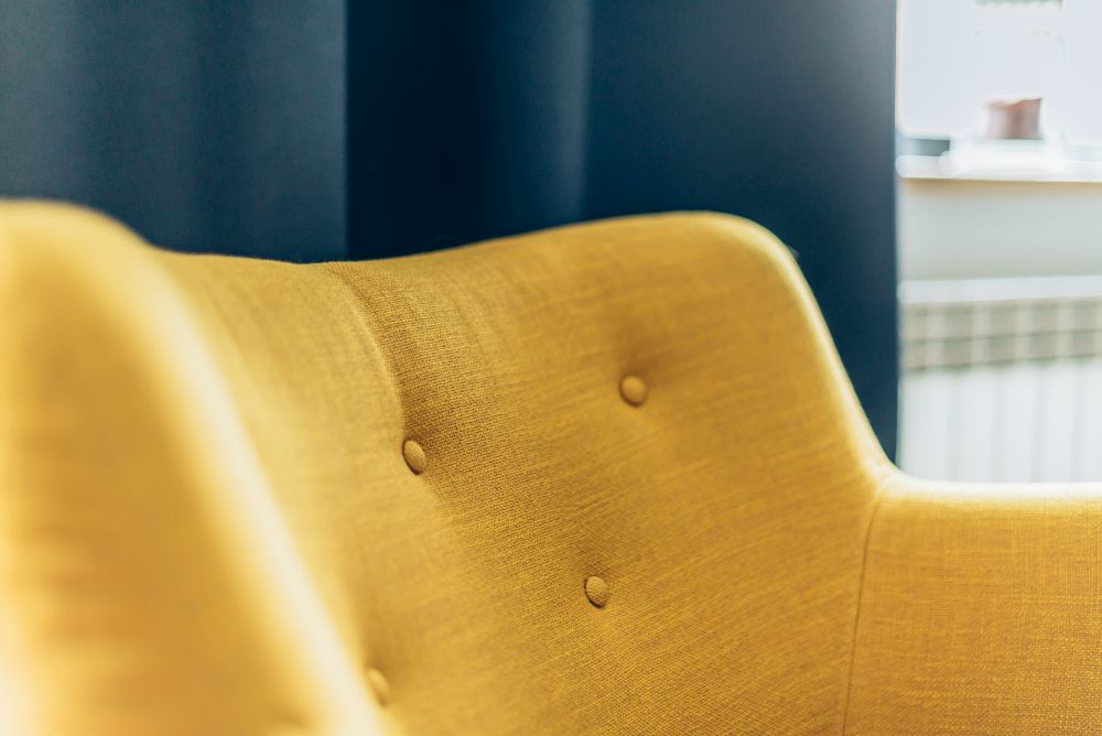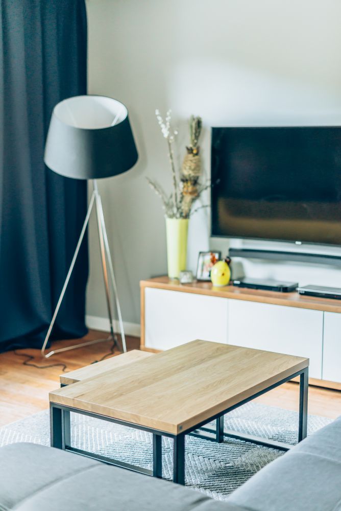 Duży salon połączony z jadalnią. Wnętrze pełniące funkcję jadalni i salonu, w którym znalazł się duży drewniany stół. W części salonu, gdzie stoi duży narożnik, wygospodarowano na ścianie miejsce na biokominek. Dodatki zostały dobrane tak, by nadać odpowiedni charakter wnętrza. Głównym akcentem kolorystycznym jest żółty fotel 'uszak'. Piękne zasłony w oknach oraz rolety rzymskie sprawiają, że wnętrze jest przytulne i ciepłe. Dom zbudowany w latach 90 tych, wymagał dokładnej modernizacji i na nowo projektowania aranżacji poszczególnych pomieszczeń.